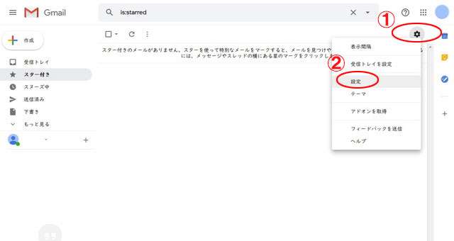 - 2.右上の「歯車マーク」から「設定」を選択します